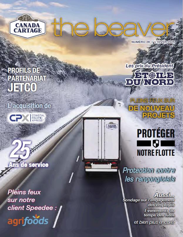 Le numéro imprimé semestriel du bulletin d’information à nos employés sera envoyé partout au pays durant la dernière semaine de février. Les employés du bureau et de l’entrepôt obtiendront des copies de leur groupe local des ressources humaines, tandis que les camionneurs recevront leurs copies par courrier à leur adresse personnelle. Nous envoyons également une version imprimée du Beaver aux employés à la retraite de Canada Cartage. Beaucoup de nos collègues à la retraite avaient demandé de recevoir un exemplaire afin de rester en contact avec leur ancienne compagnie.