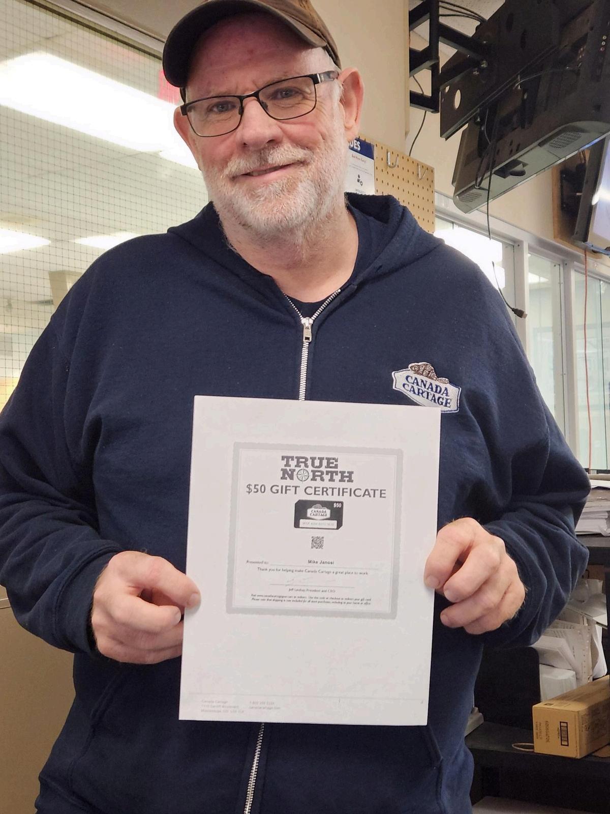 When you see a team member doing great work, let them know by sending them a thank you card or certificate. Each quarter, a team in each region reviews all submissions and recognizes those who have gone "Above and Beyond" to receive a $50.00 gift certificate Each winner is also eligible for the President's Award in January You can email your recognition, along with the reason why you nominated the recipient and the values they demonstrated, to recognition@canadacartage.com, or online at www.canadacartage.com/truenorth