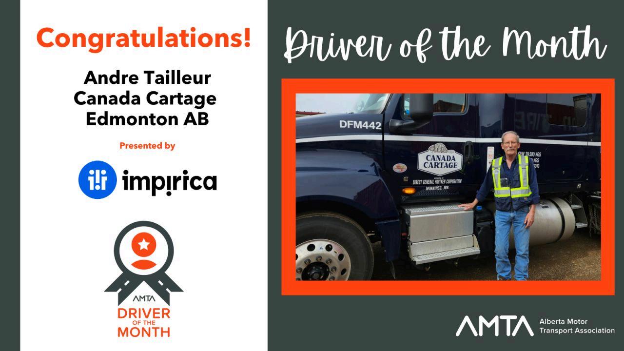 We're proud to share some exciting news from our Edmonton team: André Tailleur has been named the Alberta Motor Transport Association (AMTA) Driver of the Month for May 2025!