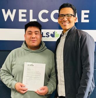 Le directeur des opérations, Rick McIntosh, à gauche, a présenté au coordonnateur des comptes Brandon Nguyen, à droite, un certificat Étoile du Nord pour avoir démontré les valeurs de notre entreprise. Rick et Brandon travaillent tous deux à notre terminal d’Edmonton, en Alberta.