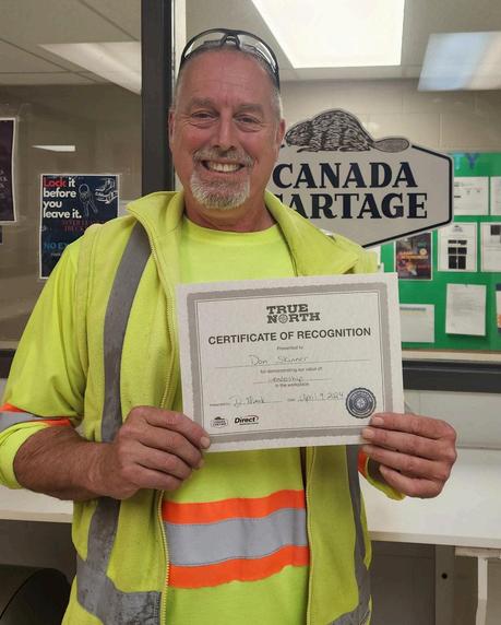 Le camionneur d’entreprise Don Skinner, qui travaille à notre terminal de London, en Ontario, a reçu un certificat Étoile du Nord pour avoir démontré les valeurs de notre entreprise