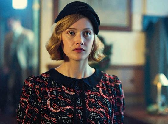powers of persuasion to get exactly what she wants. “It’s almost effortless for her — she didn’t manipulate, she just sort of suggested as if it was the only option. I really wanted to bring that into my performance,” says Vanderham. “Her Achilles heel was her love for [fascist leader] Oswald Mosley [played here by Joshua Sasse]. She sacrificed a hell of a lot for him, and she put her life in danger because of her love for him. She gave up relationships with her sisters and ultimately took on some very controversial political views because of her love for him.”
