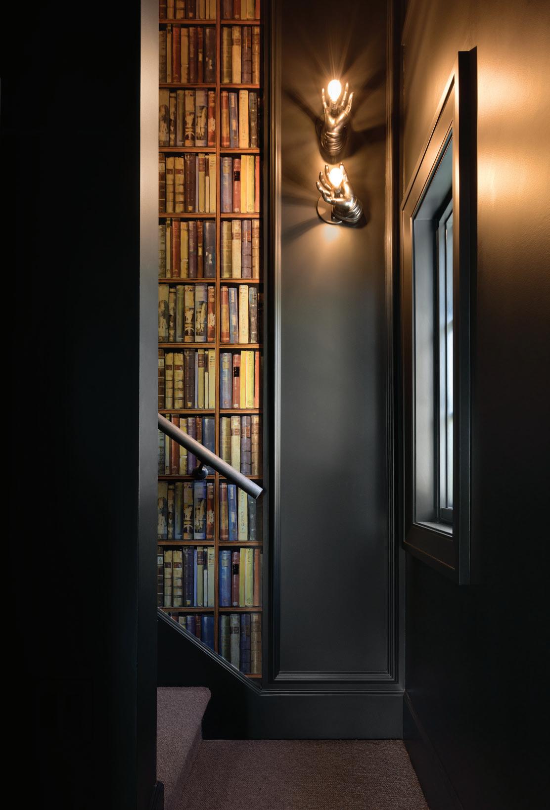 Designer Louis Duncan-He’s dramatic at-home bar wall display brings new meaning to “high spirits.”