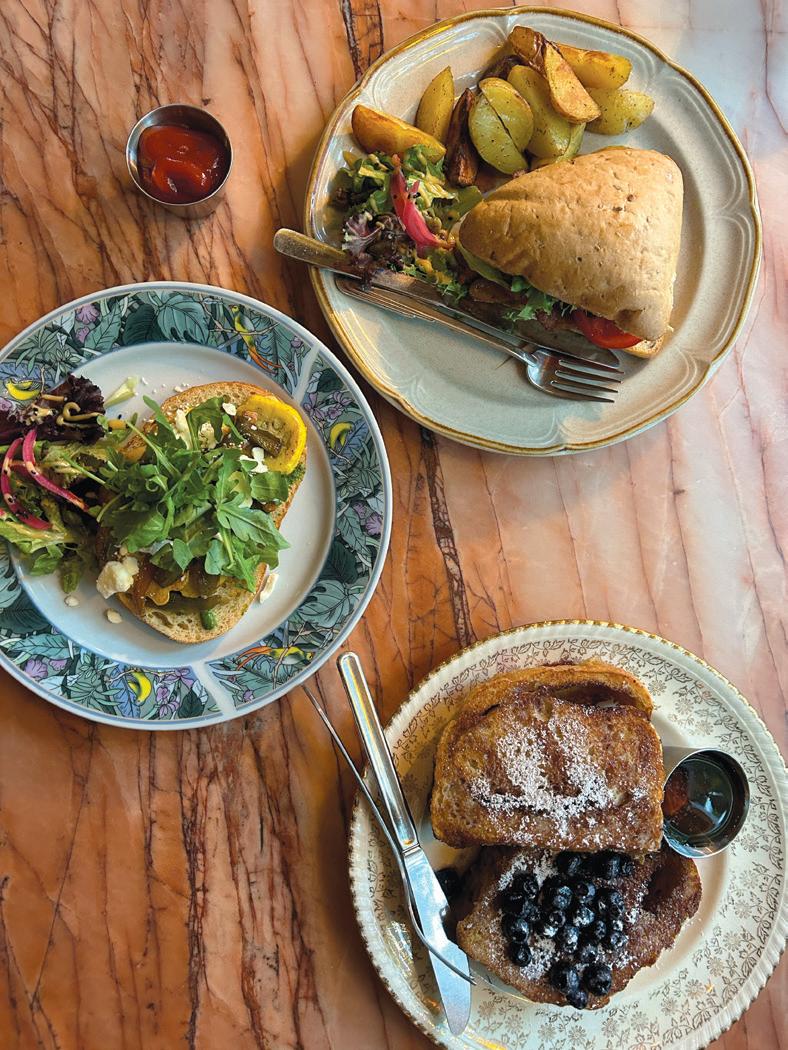 The journey to Qualicum Beach from our home in Vancouver isn’t long, but we still found an excuse for a pit stop: brunch at Nanaimo’s The Vault Cafe ( 499 Wallace St., instagram.com/ vaultcafe). Inside a baby pink building lives this eclectic, cozy café, walls splashed with vintage paintings, posters and various animal skull and antler decor. We ordered the open-faced breakfast sandwich ($9), BLTC sandwich ($16) and French toast ($16). Yes, that’s five slices of bread between the two of us, and no, we didn’t regret it at all—especially with the blueberries and sweetened condensed cream on top of those thick cinnamon loaf slices. A tableside deck of Trivial Pursuit cards that I’m sure were several decades old kept us busy (it seemed like a quarter of the answers were “Ernest Hemingway”).