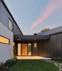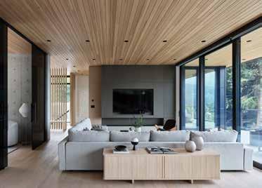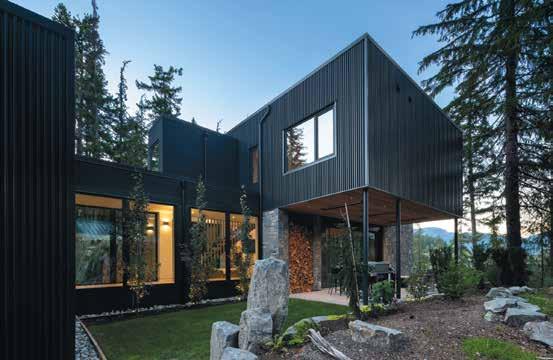 Though this kitchen is in a Whistler home, it takes its inspiration from another mountain town: Tahoe. “It became a high inspiration for this project,” says interior designer Lauren Ritz. “Homes there have this rustic drama, and we just had a great time playing with it.” So while many other Whistler homes feature wood and stone, this one swerves with raw steel detailing and chiselled limestone countertops; cabinets, meanwhile, are made from rustic, pressed-wood veneers finished with a water-based lacquer (shoutout to McGrath Millworks). Cold-rolled steel wraps the hood vent and cascades right down to the stovetop, because, as mountainrugged as this “cabin” kitchen is, it’s still made for modern life. “It’s an easyto-wipe surface that’s going to age well over time,” says Ritz.