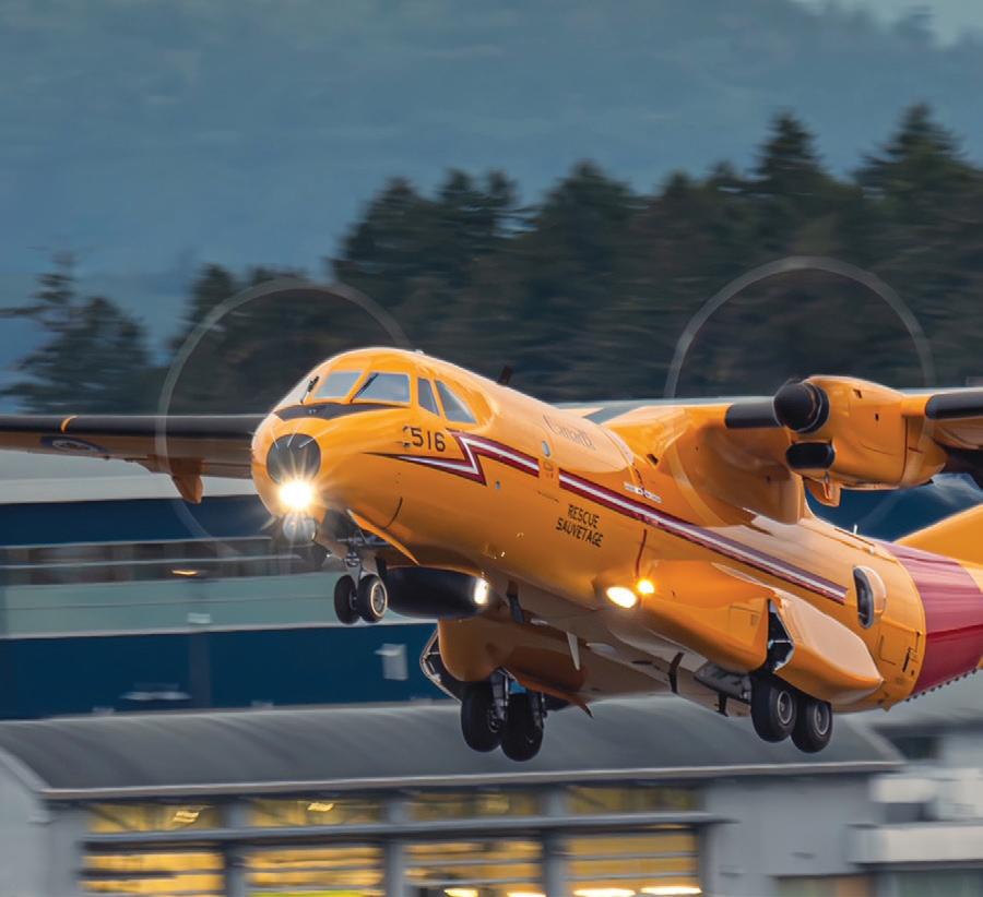 While conventional Canadian SAR aircraft were designed to go low and slow and have short-field takeoff and landing characteristics, the Kingfishers were not designed for this. Instead of relying on human observers peering out of bubble windows, on board the Kingfishers are an array of high-tech sensors and instruments, such as MX-15 Electro-Optical and Infrared Cameras, that can detect persons or objects like a downed aircraft or a sea vessel in distress from more than 40 kilometres away. The Comoxbased Kingfishers will cover not only Canada’s West Coast and out over the Pacific Ocean for 1,500 kilometres, but the entire province of British Columbia as well as Yukon Territory.