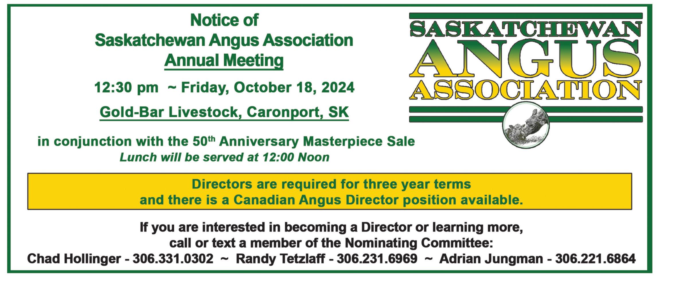 Nominations may be submitted via email to office@saskatchewanangus.com by Monday, October 14th