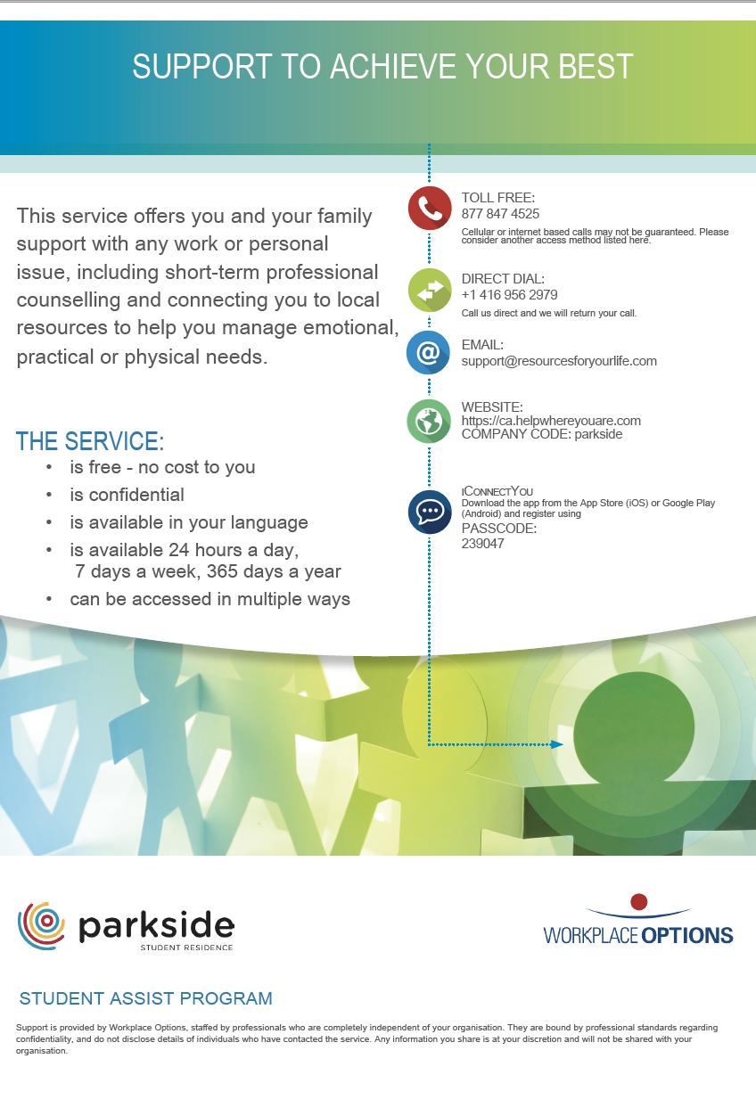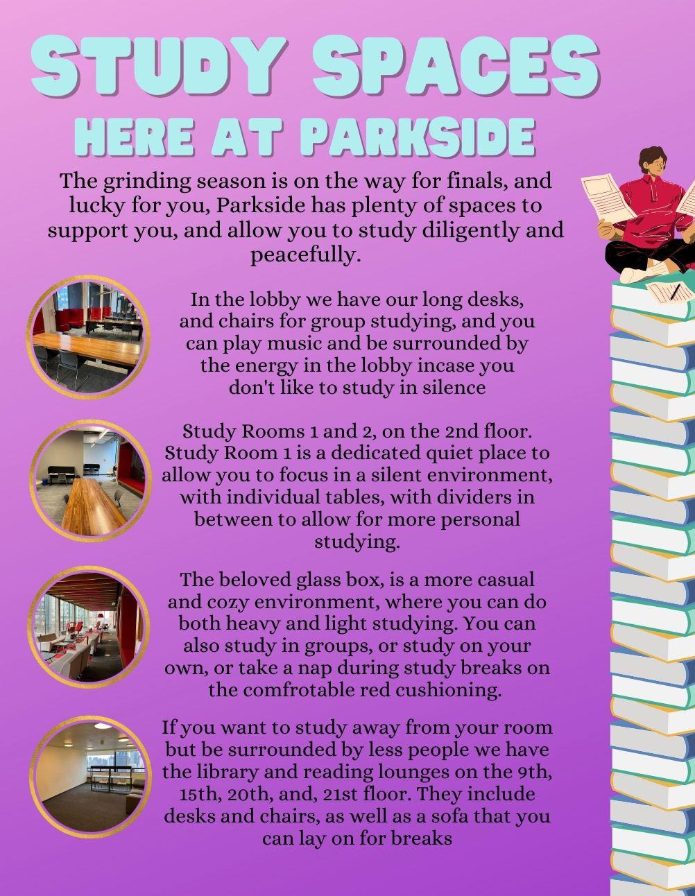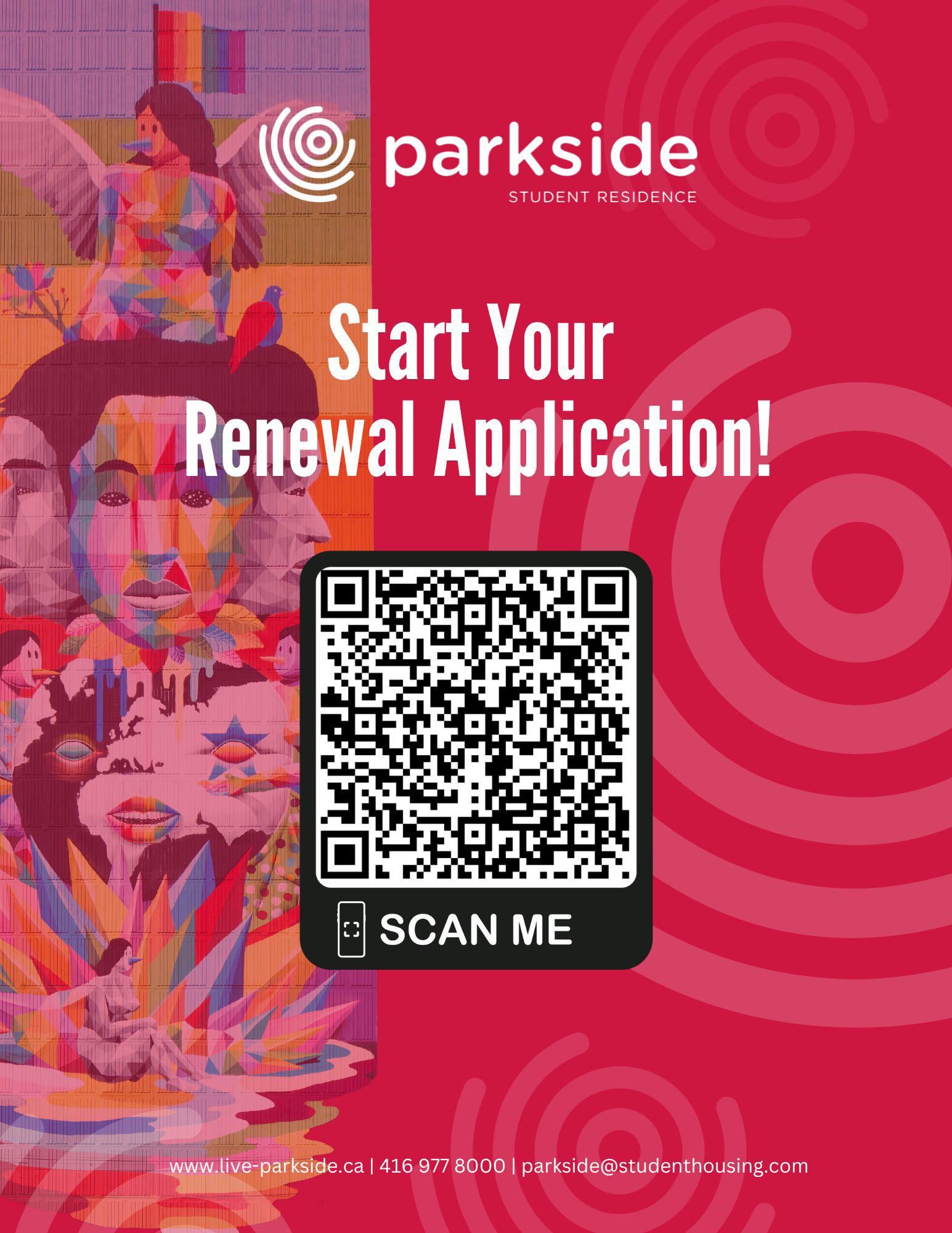 Lastly, as we prepare for the end of the academic year, we want to remind you think about your housing plans for next year. Renewal applications are still open and space at Parkside are filling quickly! Secure your renewal space before we are leased out.