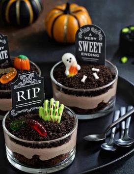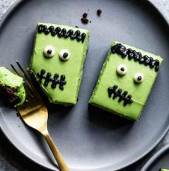 TREAT TREAT TREATS MATCHA CHEESECAKE BROWNIE DIRT PUDDING 2 DOZENS OF COOKIES 3 CUPS CANNED PUMPKIN 3/4 TEASPOON PUMPKIN PIE SPICE 2 CARTONS (1-1/2 QUARTS EACH) VANILLA ICE CREAM PUMPKIN ICE CREAM SANDWICHES 1 9X9-INCH PAN OF BROWNIES 1 3.9-OUNCE BOX OF INSTANT CHOCOLATE PUDDING MIX 1/2 CUP MILK 1 14-OUNCE CAN OF SWEETENED CONDENSED MILK 1 8-OUNCE CONTAINER FROZEN WHIPPED TOPPING, THAWED 8 CHOCOLATE SANDWICH COOKIES, CRUSHED INTO FINE CRUMBS 2/3 CUP HEAVY CREAM 2 8-OUNCE BLOCKS OF CREAM CHEESE 1 CUP POWDERED SUGAR, SIFTED ½ TEASPOON VANILLA EXTRACT 1½ TABLESPOON MATCHA POWDER