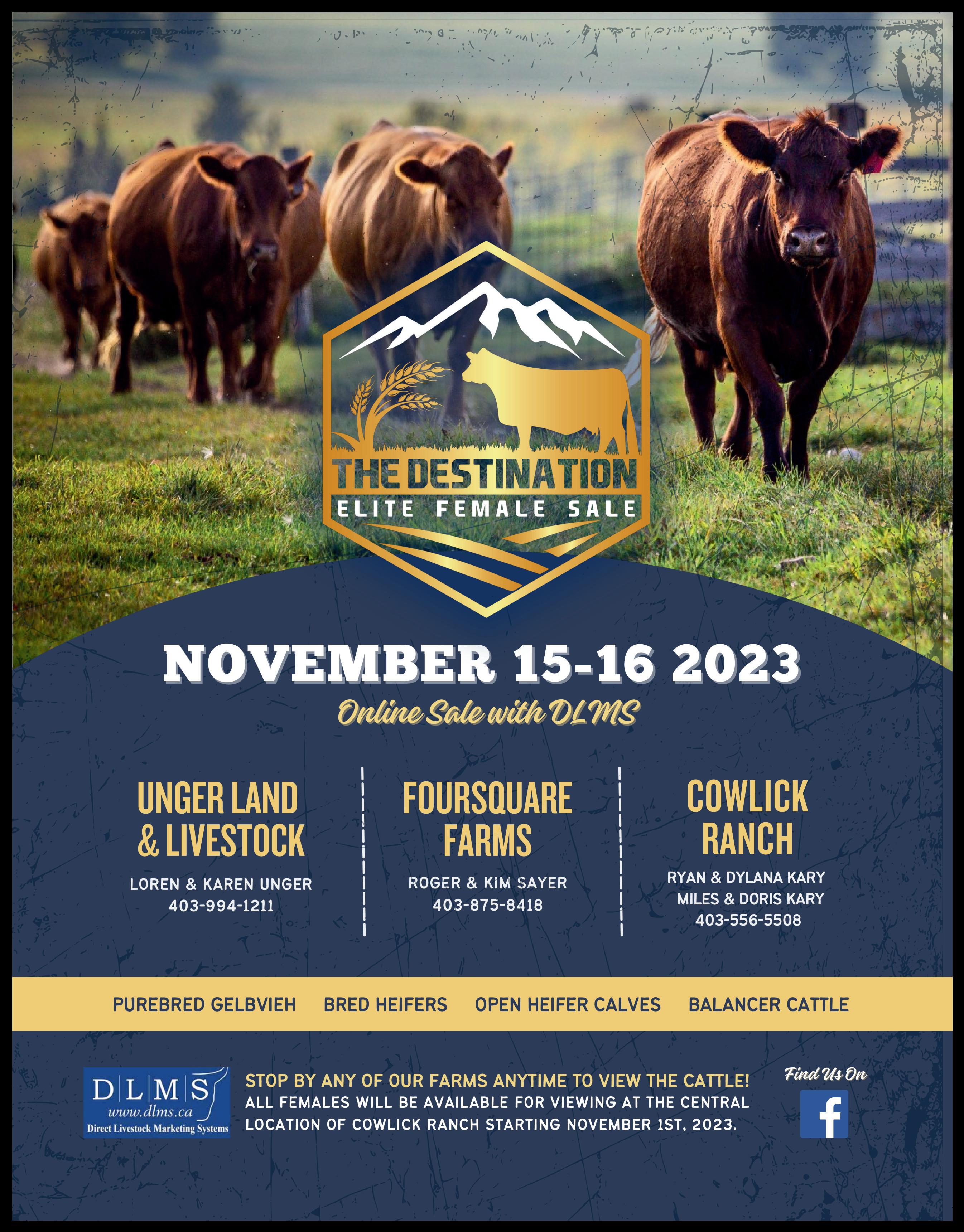November 15-16 - The Destination Elite Female Sale, DLMS Farmgate Timed Auction