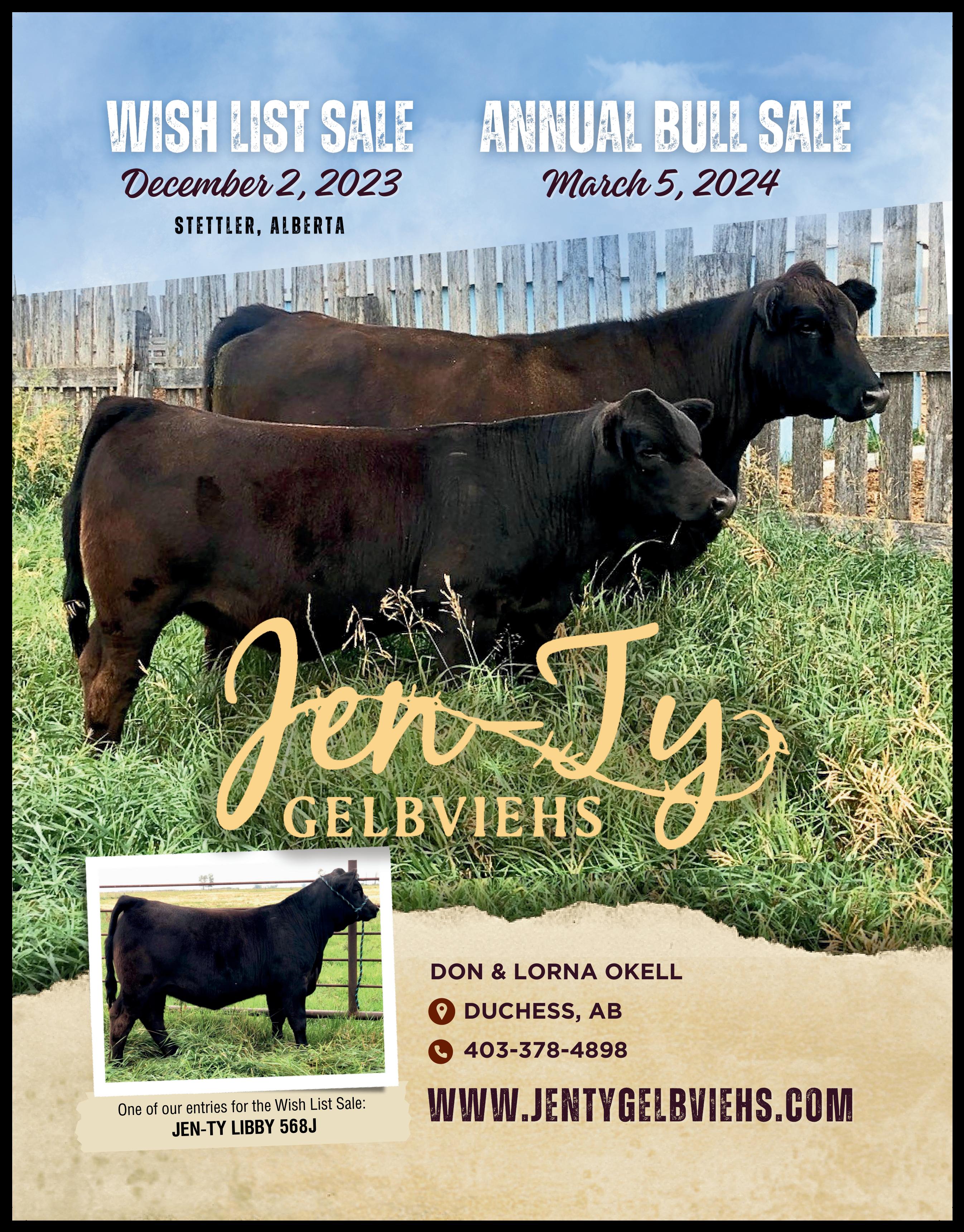 GG Fall 2023 Page 49 Man Sask Gelbvieh Association would like to thank for donating this years donation heifer. Thank You S: Tip Hercules 99H ET HL Jazz 15L Tickets available Contact Cynthia 204-886-7683 or etransfer mansaskgelbvieh@gmail.com Through DLMS at PGA Sale Draw will be made at the Man Sask Gelbvieh fun auction December 9. D: GCC Jazz 38F