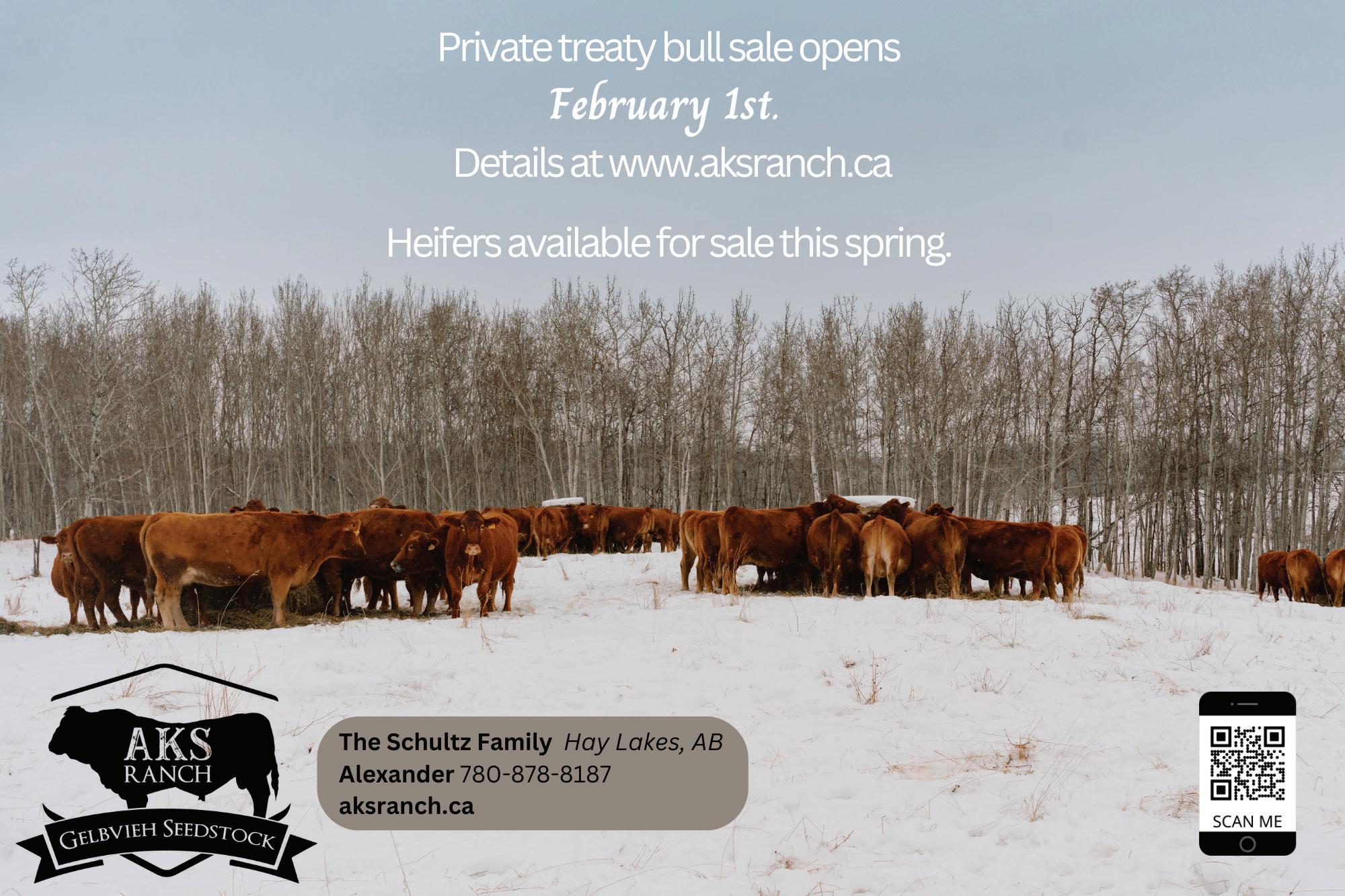 Feb 1 - AKS Ranch Private Treaty Bull Sale Opening Day, Hay Lakes AB