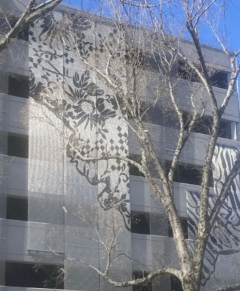 The QEII Parkade introduces a fresh approach to the aesthetics of parking structures. At the heart of its design is a unique, artful façade that beautifies the structure and reinforces cultural significance. Designed by local artist Andrea Tsang-Jackson, the parkade’s exterior features a mesh façade inspired by Nova Scotia’s multicultural heritage. Created in collaboration with community members, the public art decorates amd narrates the stories of the community.