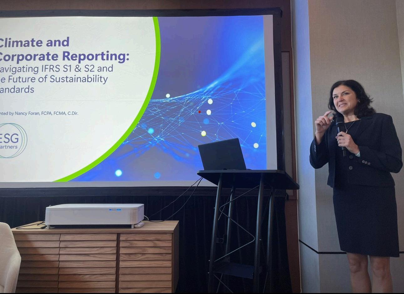 ESG Partners provides high-impact consulting services across supply chain, risk mitigation, climate action, sustainable finance, and ESG program development and reporting, grounded in frameworks such as the CSDS, ISSB/IFRS, TCFD, and GRI Foran's impact extends across Canada and the Caribbean, where she has helped lay the foundation for sustainability in industries such as manufacturing, fisheries and oceans, energy, technology, healthcare, banking, and agriculture.