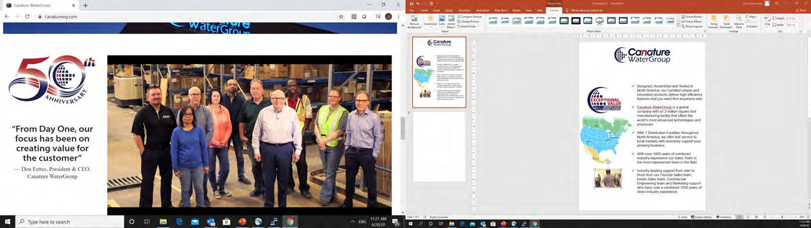 Canature WaterGroup is celebrating over 50 years of Innovation, Quality, Efficiency ... and Growth! Our focus has not changed much since I started the business back in 1968! Our mission has always been to create the most value possible for our customers. As a result, we have built many long-term partnerships over the years. I call them partnerships because that is really wh Ωat they are. Our success depends on our customers’ success.