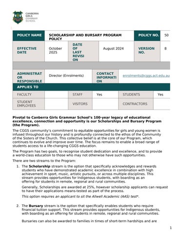 Canberra Girls Grammar School (CGGS) is a non-selective Independent Anglican School with an enrolment of approximately 1,300 students. Spread over two campuses, the School is co-educational from Early Learning to Year 3 and girls only from Years 4 to 12. Boarding facilities are available for girls in Years 7 to 12. For more information, please visit our website www.cggs.act.edu.au