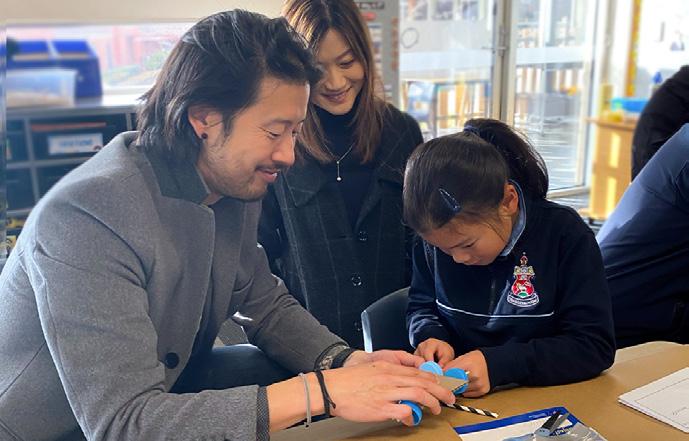 Open Classrooms allow parents and carers to engage firsthand with their children's learning experiences. Primary School students invited their families to participate in activities like guided tours across various subjects. Parents collaborated with their children on 3D projects with moving parts based on designs from the 'How the World Works' Unit of Inquiry, which explores materials and their properties. Additionally, parents engaged with coding projects in the Innovation Hub, viewed student artworks, and reviewed exercise books.