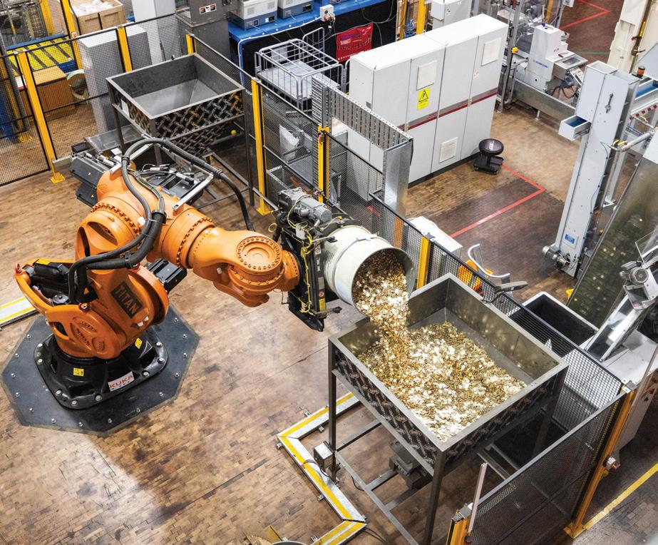 From the factory viewing platform, gaze over the machines that make millions of coins each year and see the star of the show, Titan, the giant orange robot, lift barrels of gold and silver coins that weigh up to a tonne.