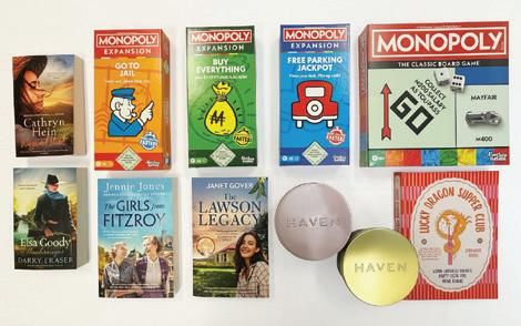We’re doing a quick clear-out of our giveaway cupboard and putting a bunch of unclaimed goodies back up for grabs. If you missed out last time, now’s your chance to snag something free before it’s gone. In this bundle, we have a monopoly set with an expansion pack, four romance novels, a cookbook and two Haven candles.