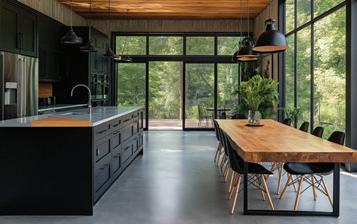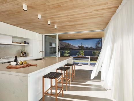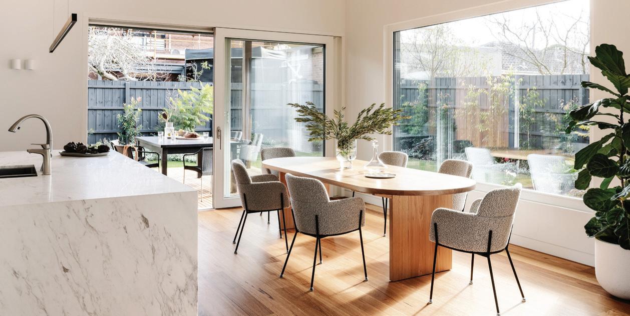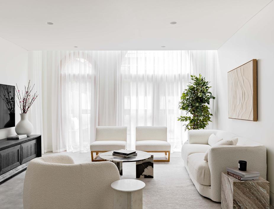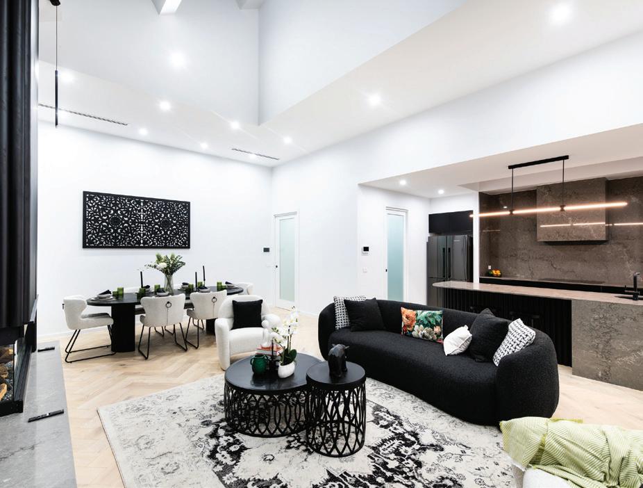 The open plan living area is the undeniable showpiece. Triple-stacked doors open the space entirely to the courtyard, inviting in natural light and fresh air while creating seamless indooroutdoor flow. It is a design that feels impressive yet effortlessly