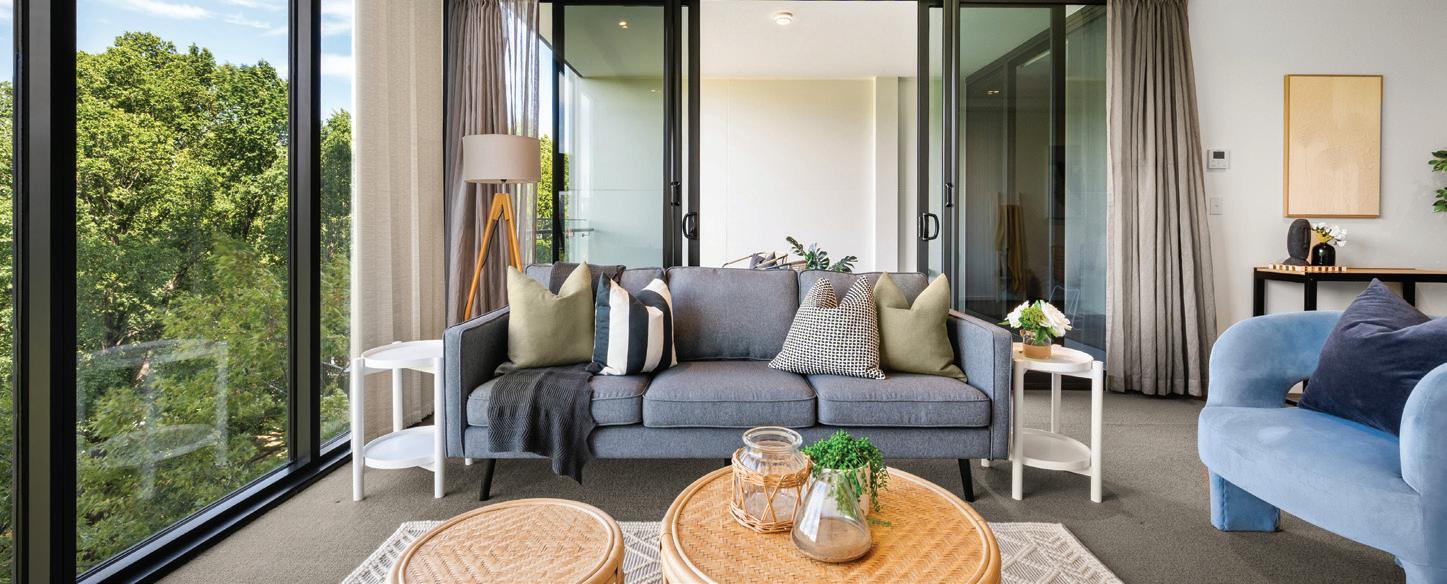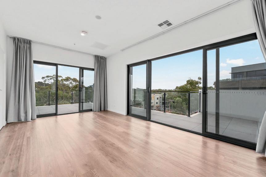 The beautifully appointed kitchen is designed for both practicality and style, featuring premium Bosch appliances, stone benchtops, an oversized island and generous pantry storage. The living area flows seamlessly onto a covered balcony, ideal for year-round alfresco dining while taking in the tranquil park views.