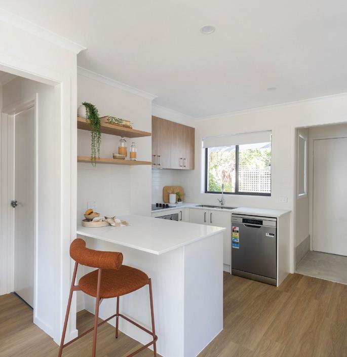 • Modern kitchen with granite benchtop, stainless steel appliances including dishwasher