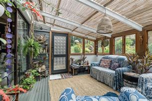 What truly sets this property apart is the ambiance. The lush native gardens, lovingly curated by the current owners, provide privacy and serenity, with greenery visible from every window. Double-glazed windows and a cosy lounge with a server hutch complete the picture of a home designed for comfort and relaxation.