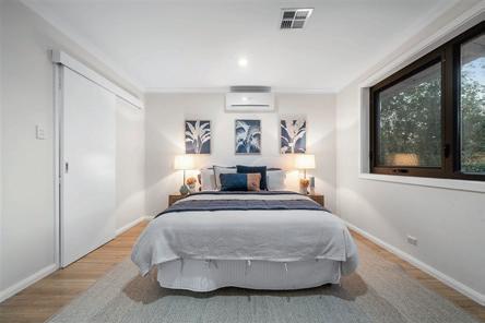 This stunning AV Jennings home in Latham is a rare find, o ering a perfect blend of charm, modern touches, and a serene location. Built in the 1970s, the split-level design features a pitched roof with a skylight, east-facing living spaces filled with natural light, and warm timber floors throughout. Thoughtful renovations to the kitchen, bathroom, and laundry bring a contemporary edge, while the iconic Canberra red bricks and cottage-style gardens add timeless character.