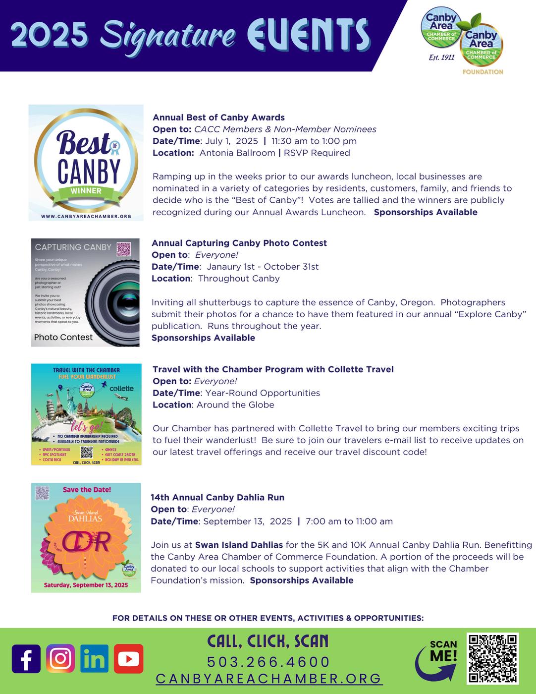 Since1911,theCanbyAreaChamberofCommercehasbeen dedicatedtothesupportandadvocacyofourlocal businesses,whoaretheheartofourextraordinarycommunity.