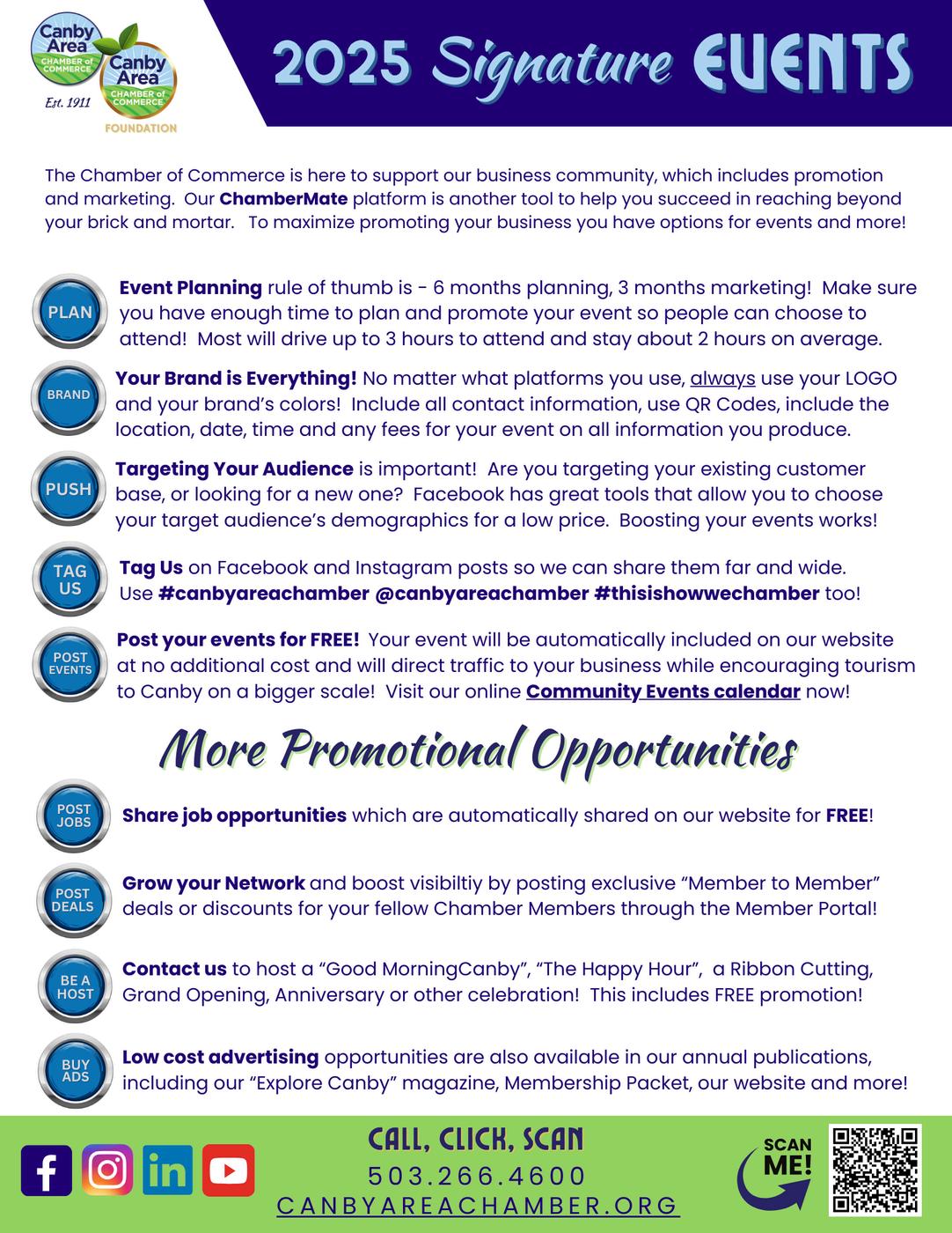 Alongwithyourmemberbadge,usingtheseofficialChamberlogos willhelptoelevateyourplaceinlocalbusinesscirclesandaswellas showsyoursupportwithinthegreaterCanbyCommunity!