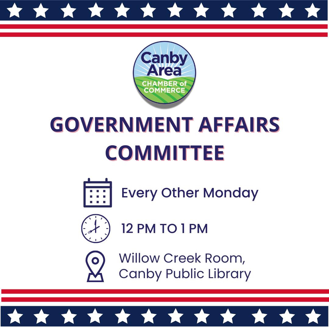 Duringtimeswhenourgovernmentisoutof session,ourGACcontinuestomonitorissuesatall levelsofgovernmentthatmayimpactCanby businessesandthecommunity.