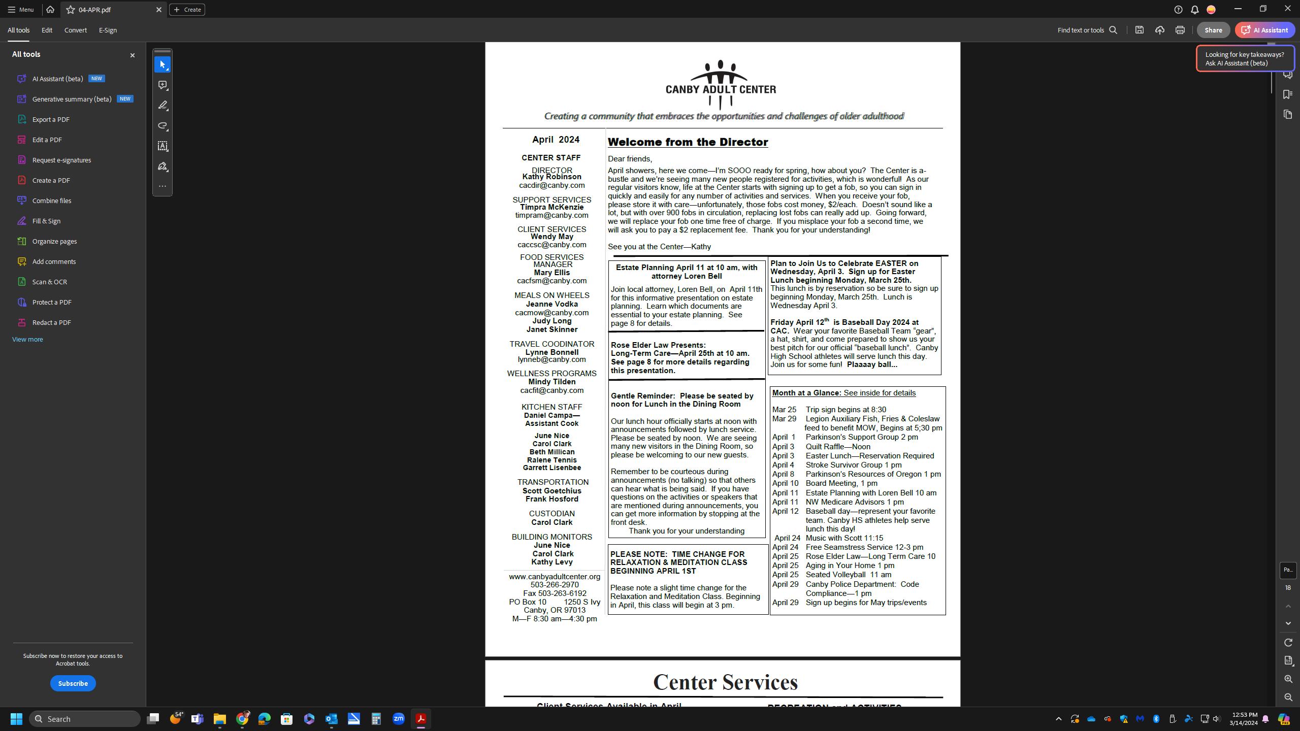 We now sell ad space in our bi-monthly newsletters! Contact us for pricing and print deadlines today. Email to: Chamber@CanbyAreaChamber.org Page27