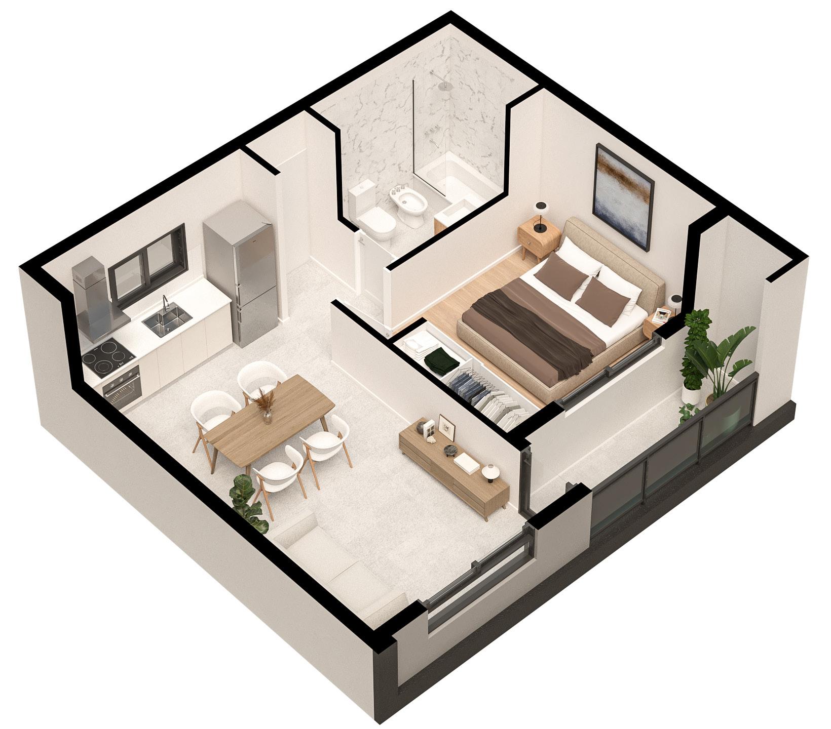 Domus One presenta 2 exclusivas unidades de 2 ambientes en dúplex, diseñadas para ofrecer una experiencia de vivienda que combina confort, funcionalidad y calidad espacial.