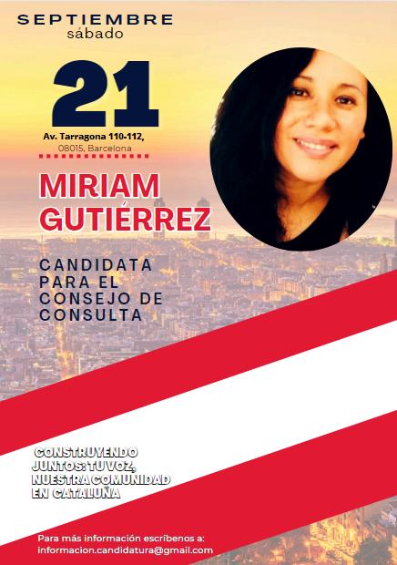¡Gracias por su apoyo y no olviden al votar marcar la candidatura de MIRIAM GUTIÉRREZ MUNDACA en las próximas elecciones al Consejo de Consulta del Perú en Cataluña!