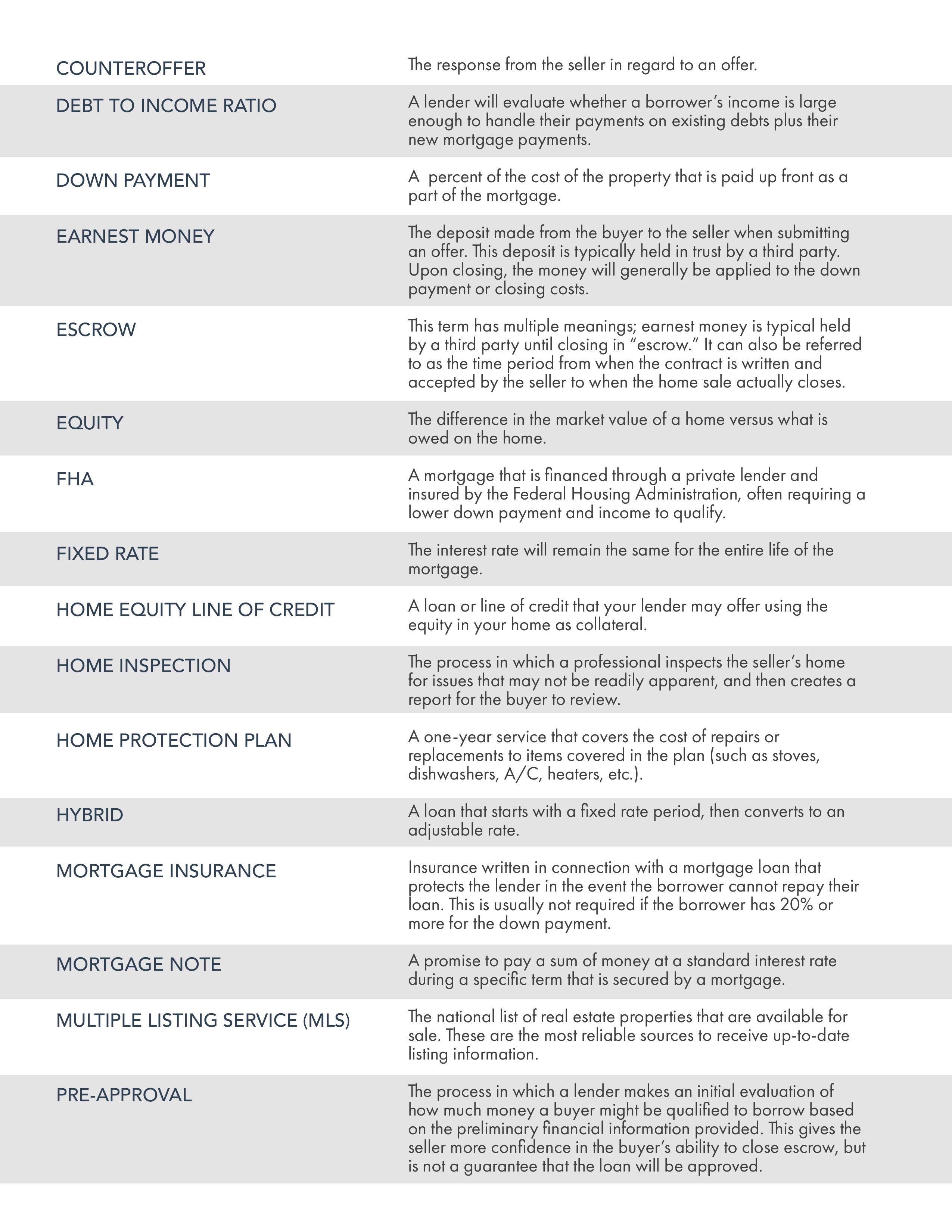 This will provide an estimate of the home’s current market value, a timeline to obtain financing, & time to schedule an appraisal.