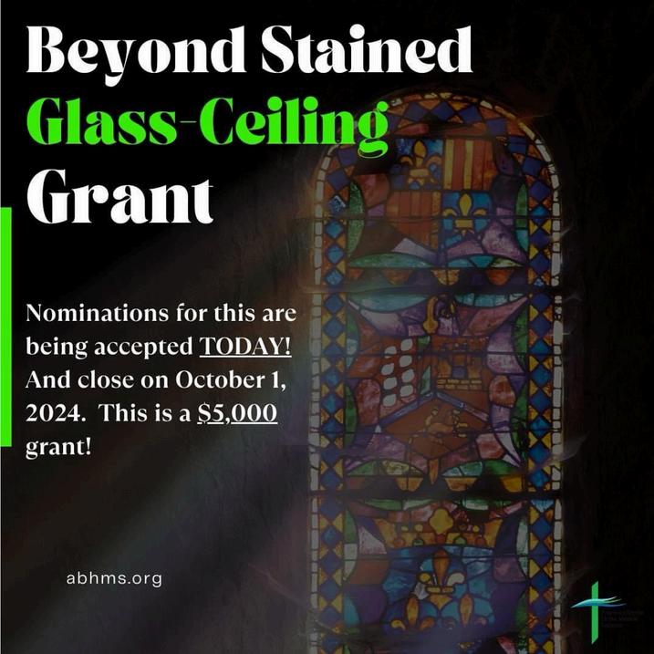 ABHMS is seeking nominations for the Beyond Stained Glass-Ceiling Grant. This grant supports ordained female Black and African American pastors serving congregations with under 300 members. ABHMS will start accepting nominations as early as today! Nominations must be received by October 1st, 2024. To nominate someone you know, even if that someone is you , visit: https://abhms.org/beyondstainedglassgrant #ABHMS #Beyond #StainedGlassCeiling #5kGrant