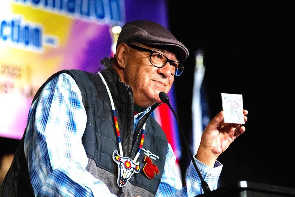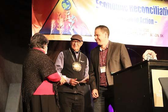 Indigenous Private Sector Business of the Year: Walker Home Construction. Leslie Walker, a member of Champagne and Aishihik First Nations in Yukon accepts the award for his Whitehorse-based business. The award is sponsored by Accosys Consulting Services and presented by David Acco.