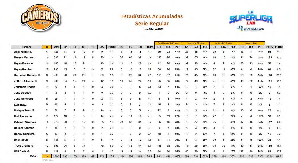 Jeison Colomé se posiciona en el tercer lugar en el liderato de puntos con 23.0, es segundo en robos con 2.7 por encuentro y es cuarto en asistencias con 5.3 por