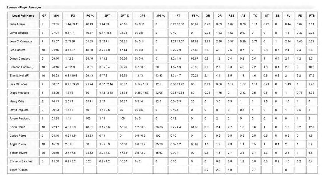Raimer Santana tiene cuatro partidos esta temporada, lanzando de manera perfecta desde la línea de tiros libres; Está entre los líderes de la liga en porcentaje desde la línea de tiros libres.