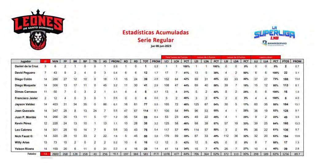 Jeison Colomé es el líder de puntos de la liga en estos momentos, promediando 22 puntos por partidos; El capitán de los Cañeros es quinto en asistencias con 4.6, primero en robo con 3.2 y tercero en triples anotados con 10.
