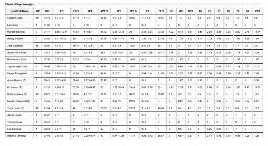 VS. TITANES 1-2, DIF -18 (236-218) / 3 JUEGOS