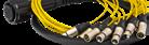 Here multi-way fibre cables, fitted with opticalCON DUO or opticalCON QUAD connectors, are used to provide a point-to-point link, these break-out boxes split the two or four channels to a variety of other formats, including Duplex LC, SC and ST connectors, depending on model. The connectors are mounted in a rugged, extruded enclosure, suitable for use in broadcasting and liveevent environments. Both multi-mode and single-mode types are offered.