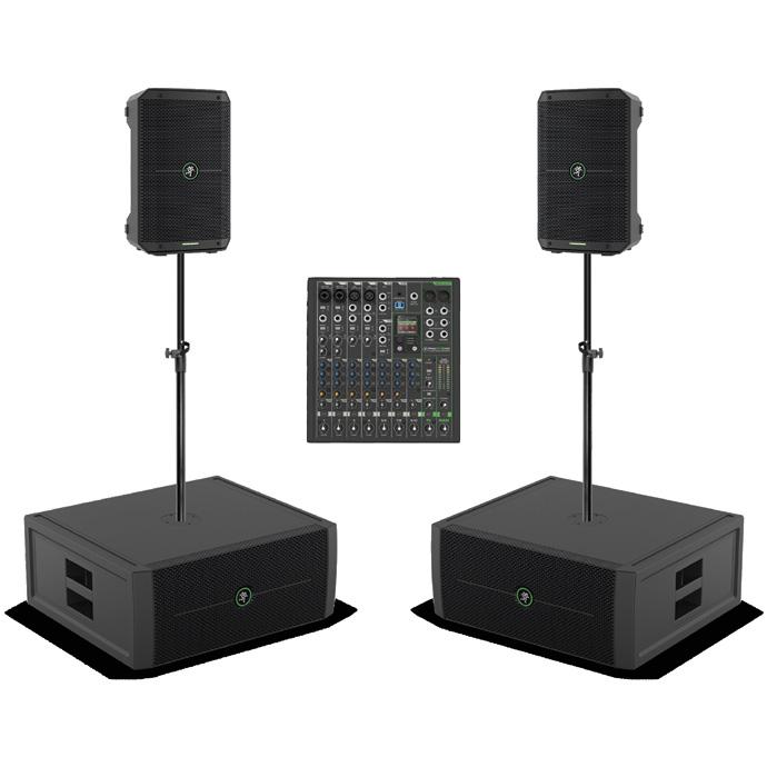 This bundle is a complete Mackie battery-powered portable PA system, including two Thump GO loudspeakers, two ThumpSub GO subwoofers, ProFX10 GO mixer and rechargeable batteries.