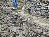 다리 앞으로 퇴적암층이 보이 고, 바닥에는 공룡 발자국이 찍 혀 있다.