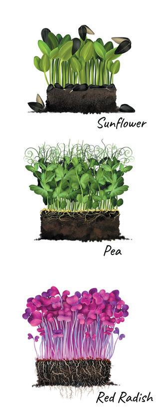 Microgreens have been called the toddlers of the vegetable world, and are harvested and eaten as soon as the plant’s true leaves emerge—anything from 7-21 days. These tiny seedlings are grown until they are between 2.5 to 8 cm, then snipped off at the base and eaten, adding a sweet, savoury, bitter or spicy tang to a wide variety of meals and drinks.