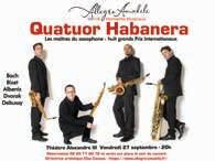 Pour le premier concert de la saison 2019 des Moments musicaux d’Allegro Amabile, Elsa Cassac, la talentueuse directrice artistique de la manifestation et elle-même pianiste concertiste, reçoit l’étincelant quatuor Habanera le 27 septembre à 20h, au théâtre Alexandre III. Quatuor de saxophonistes de référence, sans doute le plus attractif, Habanera, qui a un palmarès de huit Grands Prix de Concours Internationaux, se produit en France et dans le monde depuis 26 ans avec le même succès. Les musiciens de cet ensemble, virtuoses du saxophone, ont su renouveler le potentiel expressif et créatif de l’instrument : ils sont passés maîtres dans l’art de la beauté subtile des sons. Au programme : Bach, Bizet, Albéniz, Dvorak, Debussy. Réservations et rens. 06 29 77 60 79 ou 04 93 37 84 09