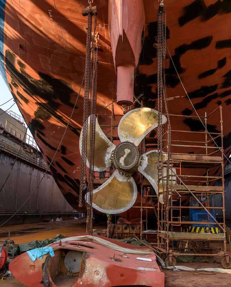 I inspected the vessel in dry-dock where I assessed the extent of the damage via ultrasonic testing (UT), confirming that the hull had lost in excess of 20% of its initial thickness. Inspection of the rudder, the propeller blades and the
