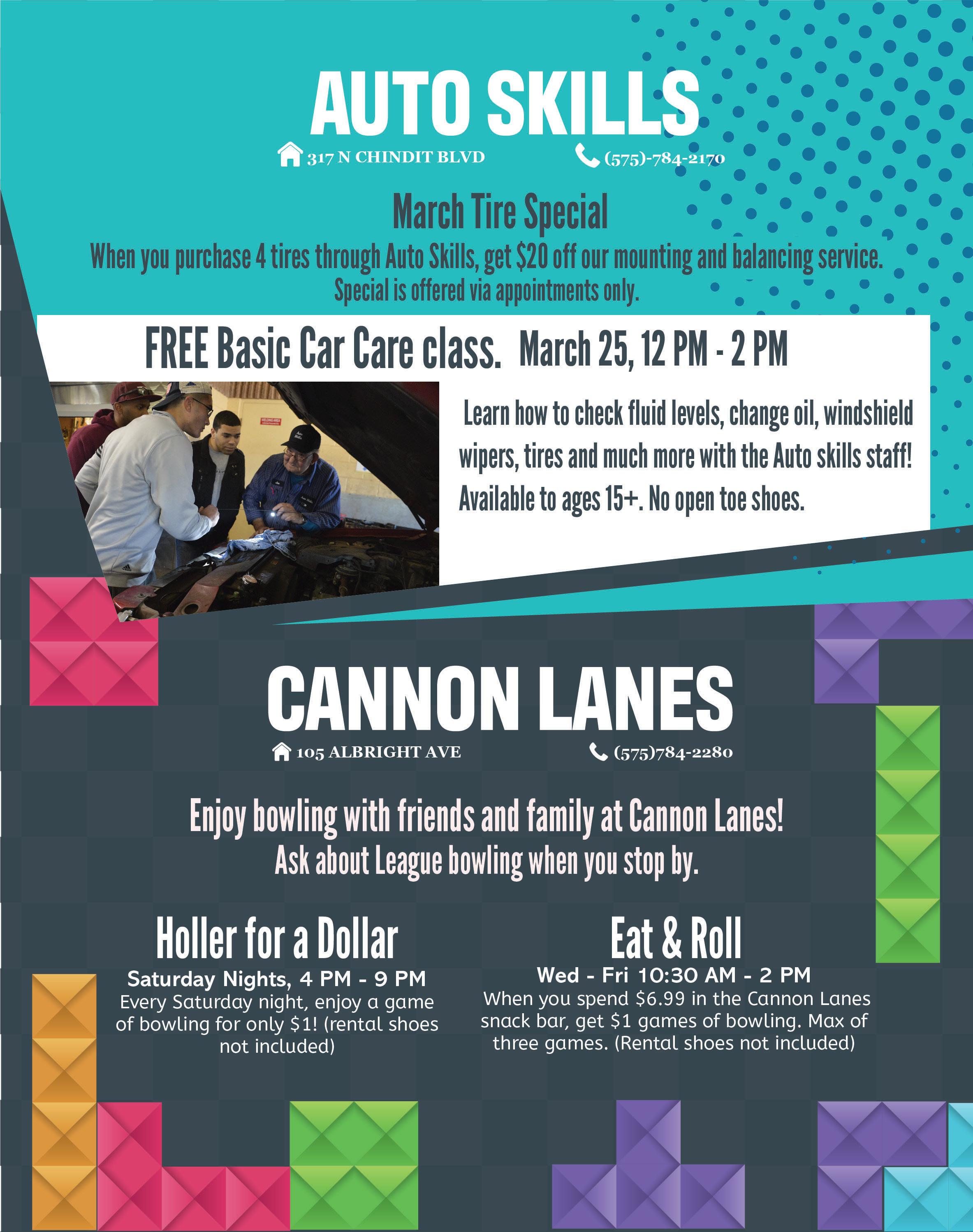 At Your Service is published by Cannon Air Force Base 27th Special Operations Force Support Squadron Marketing Department (27 SOFSS/FSK). This monthly publication is designed to inform the public of special events occurring at Cannon Air Force Base. The opinions expressed herein are not necessarily those of Cannon Air Force Base, USAF or DoD. All program dates, times and prices printed in this publication are subject to cancellation or change without prior notice. No Federal endorsement of sponsors or advertisers intended.