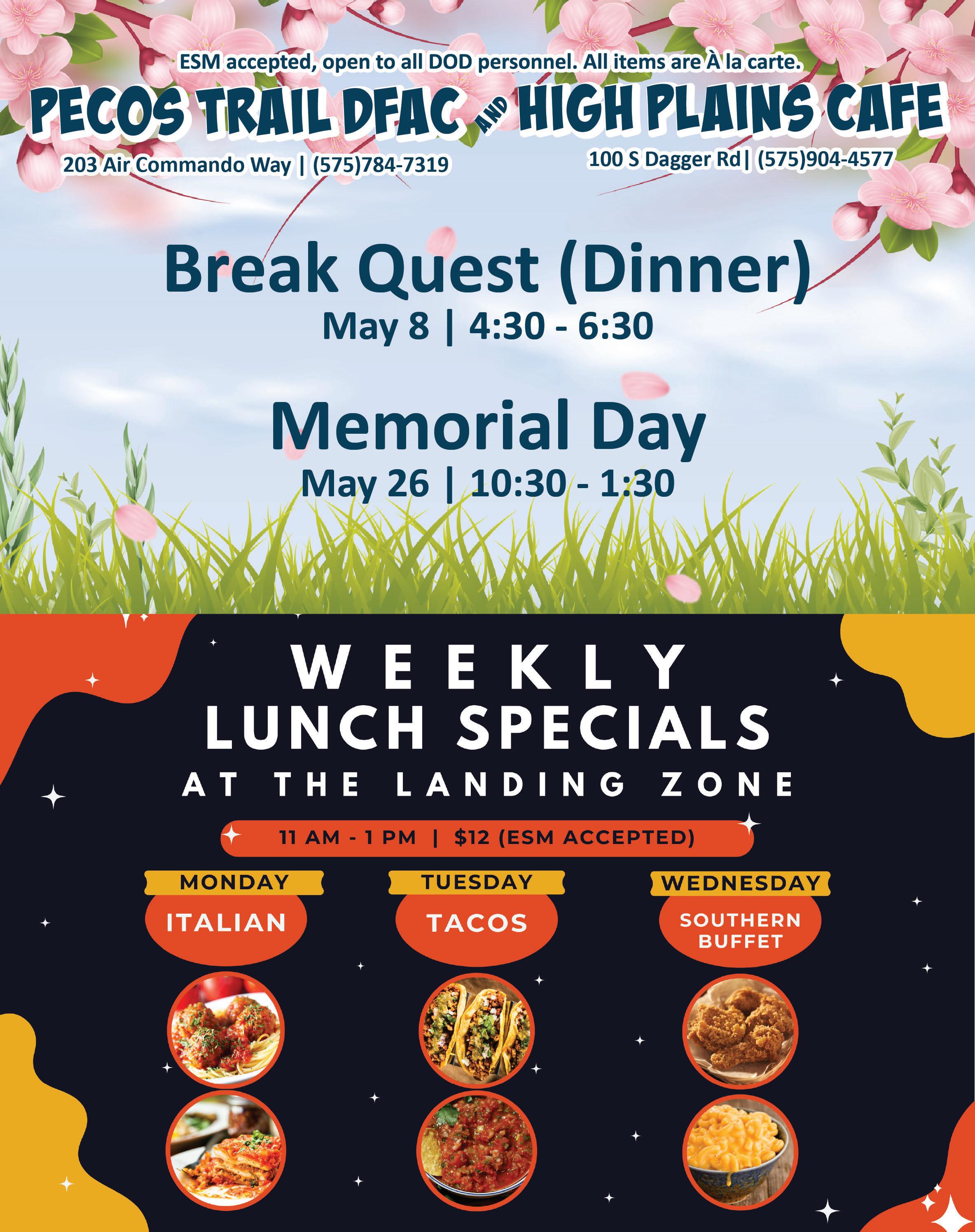 Closed Holidays, Safety Days, and Training Days. Limited service during Wing Exercises, contact your 1st Sgt for emergencies.