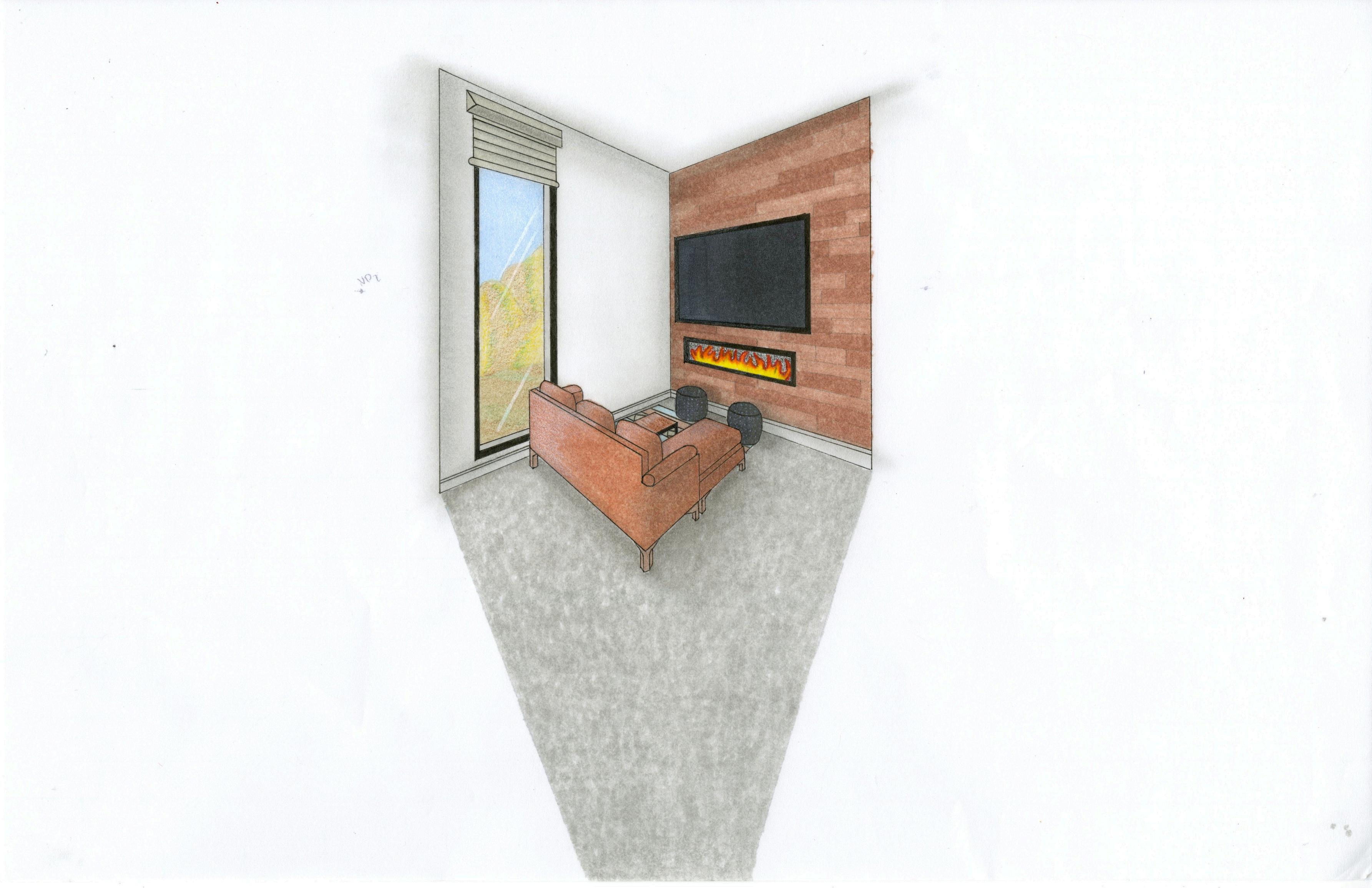 After a cold winter day, the only thing you wanted to do was go home, start a fire, and cuddle up under a big warm blanket on the couch. You grabbed a warm cup of coffee or hot chocolate and felt like you were exactly where you were meant to be. You felt a sense of safeness, coziness, and warmness flowing through your body Ensuring this feeling stayed alive every time you walked through the door, there was repetition of exposed reclaimed wood throughout the entire space Cozy and comfortable furniture was placed throughout, ensuring there were always extra pillows and throws available Ensuring this home always felt like a cozy cabin in the mountains, a pattern of darker tones and a wide variety of textures was stuck to. Using recycled materials kept the sustainability alive while also bringing in that rustic and industrial mountain feel. Incorporating lots of windows created the feeling of bringing the outside in, and also shone light on the artists' displayed artwork.